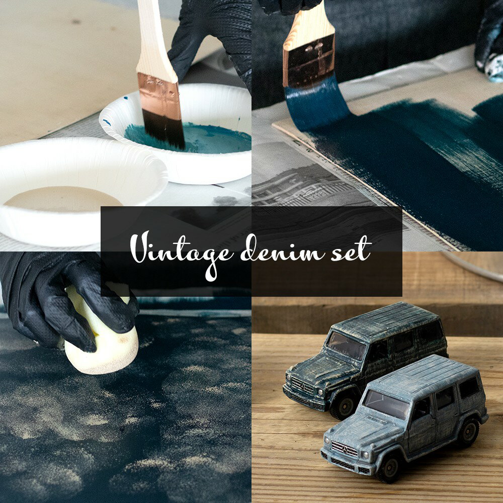 おしゃれなカラーが揃うカーペイントは単色塗りやツートンカラーなどももちろん素敵ですが、3色を組み合わせることで生まれる表情を楽しんでもらえるよう「ヴィンテージデニムセット」をご用意しました。