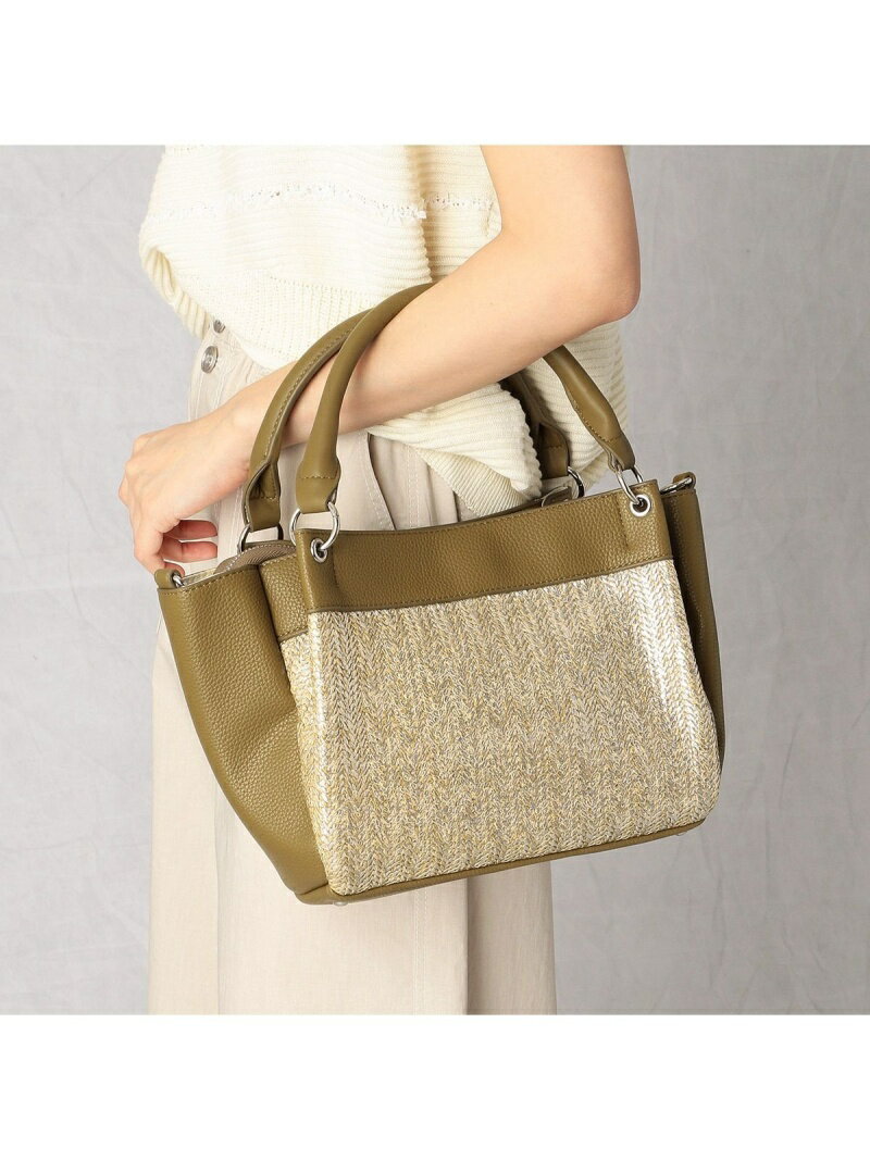 Comme ca Mature ラフィア風ハンドバッグ コムサイズム バッグ かごバッグ ブラウン ホワイト【送料無料】