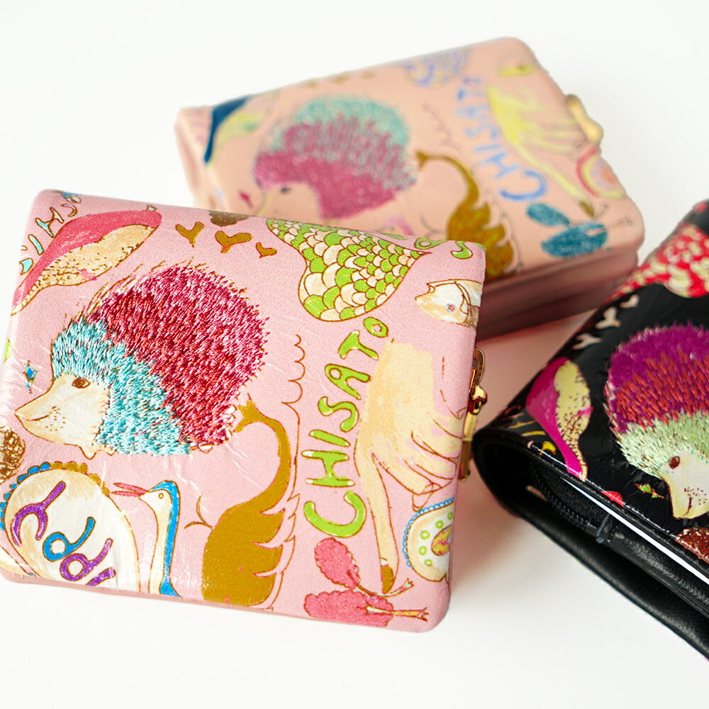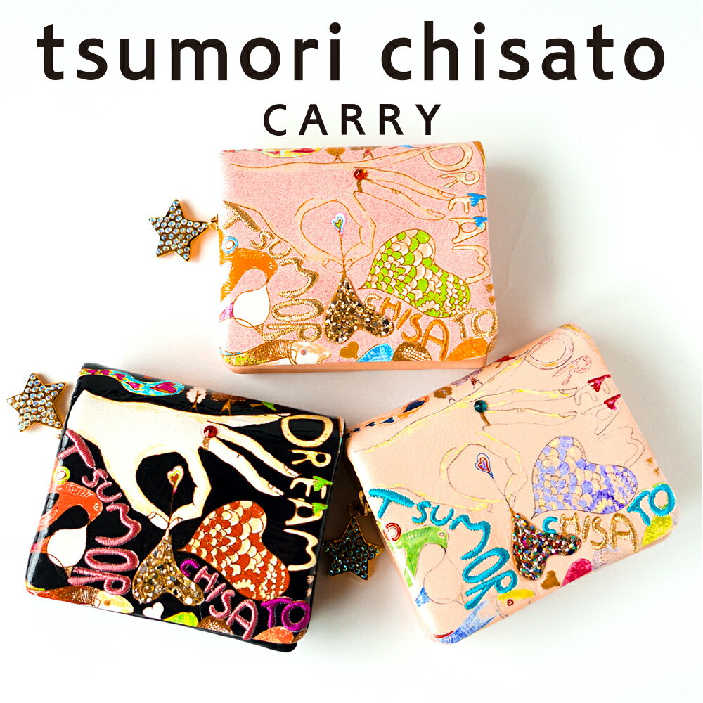 ツモリチサト キャリーハッピースタッフ ミニ財布 2つ折り財布プリント ししゅう ギフト プレゼント モードレディース 婦人 羊革 本革 57525