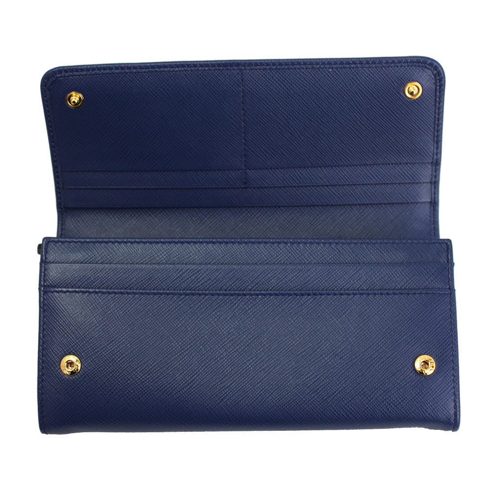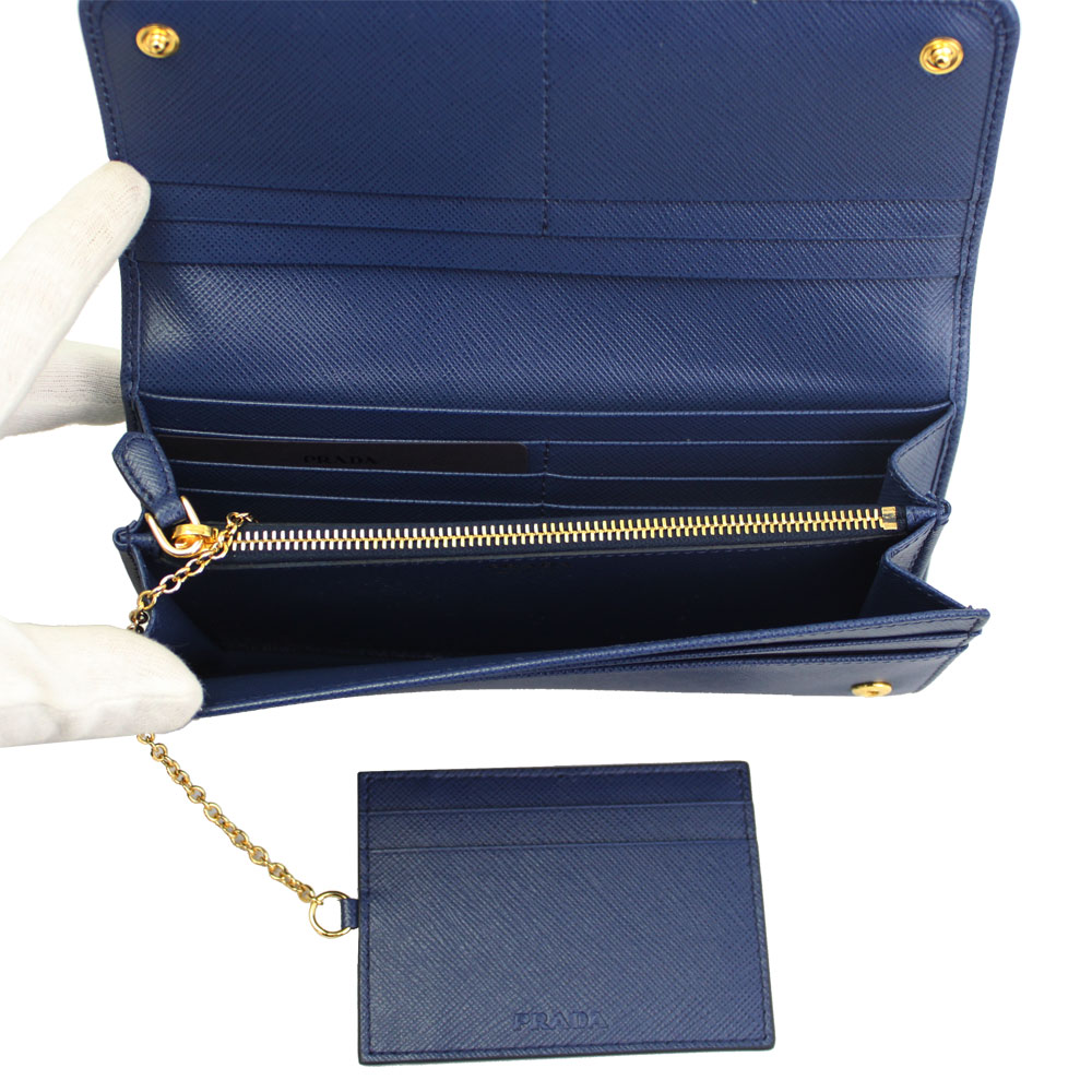 プラダ 財布 レディース 1MH132 PRADA 二つ折り 長財布 パスケース付き 型押しレザー ブルー系 SAFFIANO METAL BLUETTE 1MH132 QWA F0016